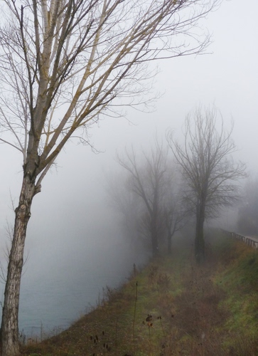 Altri tag (senza riscontro): freddo, acqua, dirupo, grigio, campagna, prato, verde, spoglio, argine, albero, invero, muschio, tronchi, bianco, foschia.