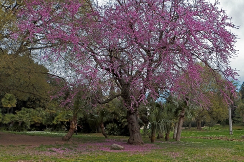 I fiori sono più sui toni del rosa che del viola viola In ogni caso da eliminare tra i tag la parola "bosco". Sono solo alberi sparsi nell'ambito della villa. |