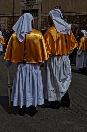 Gli abiti delle confraternite indossati durante la processione a Molfetta.