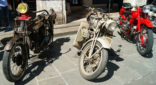 Tag: ruote, moto, tre, rosso, fanali, epoca, fari, motociclette, manubrio, esposizione, ombra.